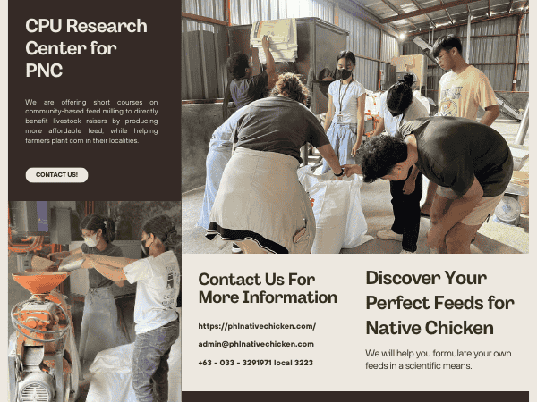 Central Philippine University Research Center for Philippine Native Chicken promotes the use of home-mixed mash. The pelletized feeds are convenient, and mash allows the raiser to: