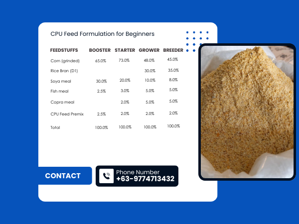 If most feed ingredients are unavailable locally but whole corn is abundant, the CPU/PNC Basemixed Feeds are recommended. You can access this product through this link HERE.