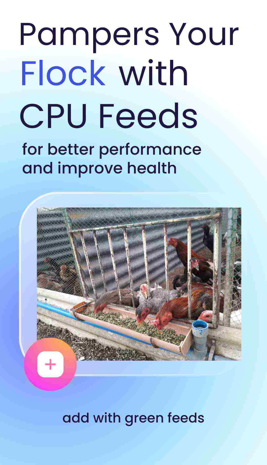 All you need is three to five drops of the CPU Fertility Booster Emulsified Concentrates for every kilo of CPU Breeder Feeds. Mix it homogenously and offer it to the chickens. For better results, offer it at least three times a week or every other day. Aside from the benefits, the continuous use of this phytomedicine helps absorb nuisance odors, keeping your farm refreshing.