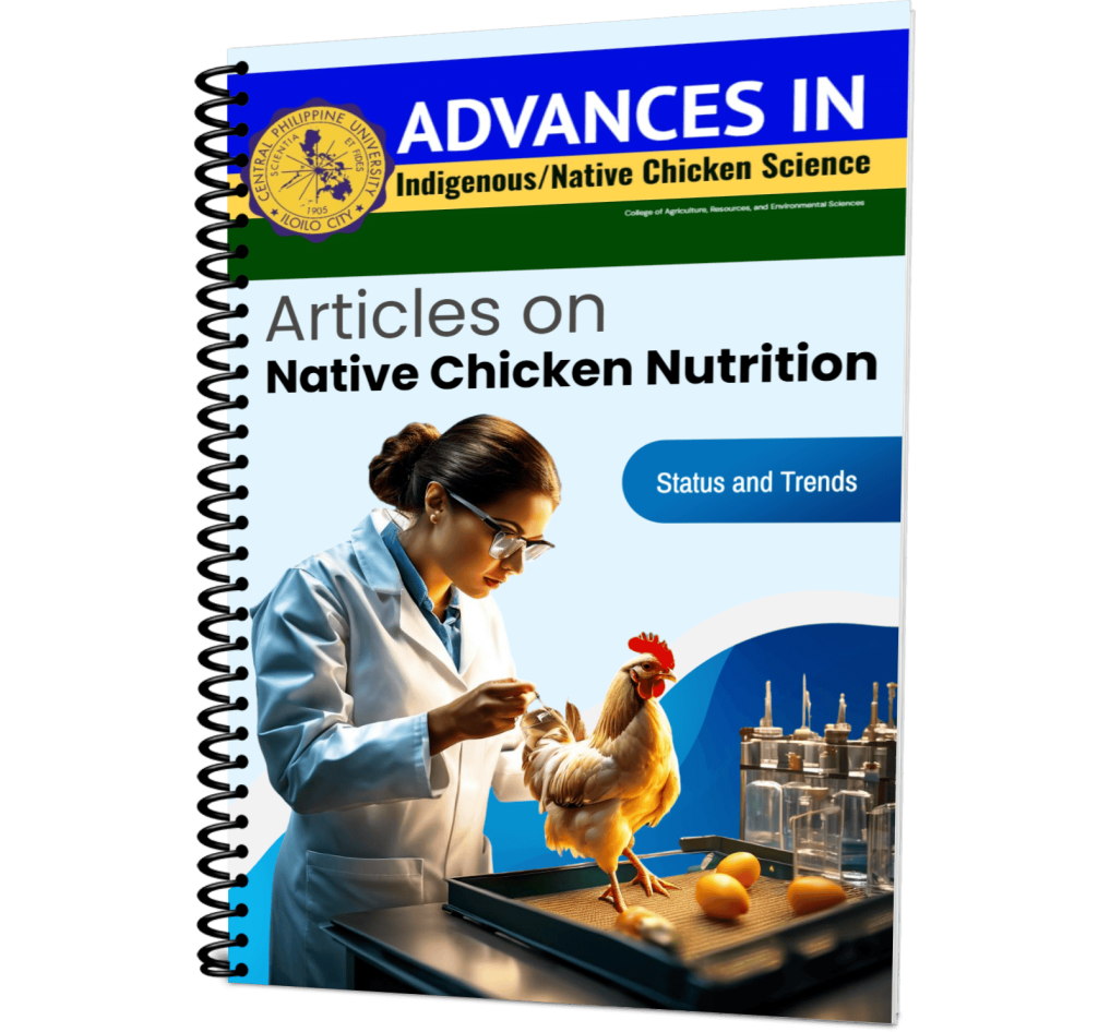 This manuscript presents a comprehensive collection of studies arranged by areas of specialization, reflecting the diverse research conducted at the CPU Research Center for Philippine Native Chicken. It serves as a valuable resource for scholars and practitioners interested in the local fowl of the Philippines, encompassing a wide range of topics that highlight the significance and uniqueness of Philippine native chickens. All findings within this manuscript are made available through open access, encouraging researchers and enthusiasts alike to engage with the data and insights provided. This accessibility fosters a collaborative environment, allowing for further exploration and contribution to the field of native chicken studies. We kindly request that you acknowledge this journal in your respective publications, as it plays a vital role in advancing knowledge and awareness about Philippine native chickens. Your recognition not only supports the ongoing research efforts but also strengthens the community dedicated to the preservation and study of this unique avian heritage.