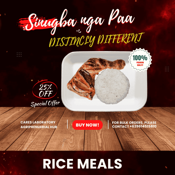 The Singuba nga Paa is a budget-friendly meal offered at both the Pinapak and the CARES Agriprenuerial Hub. The processed chicken is grown using the CPU-developed technology packages. It is to ensure a premium quality product.